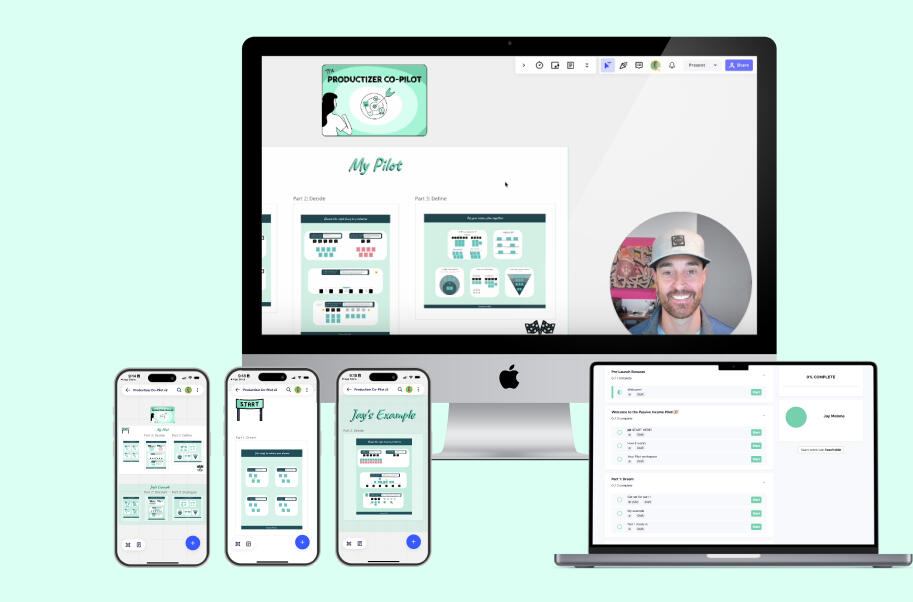 The Productizer Co-Pilot is divided into 3 sets of activities. You'll work on the activities in your own private workspace that I've designed for you.Each set of activities uses carefully-crafted prompts and thought-provoking exercises to short-circuit your imposter syndrome, produce aha moments, and unveil product ideas that feel like bolts of lightning.You'll also receive instructional videos and examples to support you throughout and ensure your success.By the end, you'll be one HUGE step closer to scaling your income, and all of the dreams that come with it.