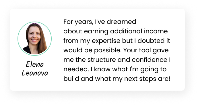 If you're like most people, it's difficult to see the knowledge, skills, and expertise you've accumulated over the years. That's called Solomon's Paradox.Finally, you'll have the support and structure to guide you through uncovering the right topic, niche, and format for you to productize.